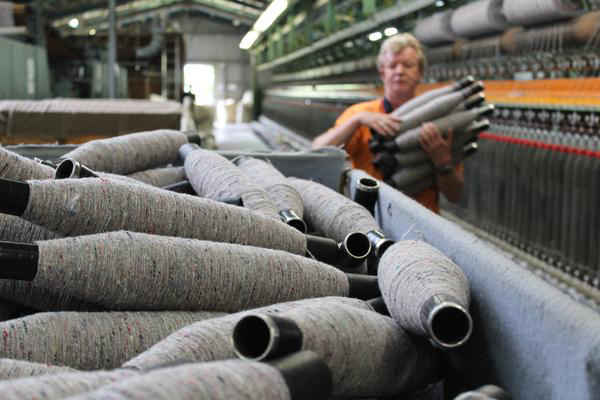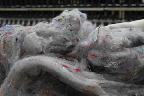 These offcuts and old blankets are ripped up in an industrial ragging machine into many small fibres of consistent size and shape.
